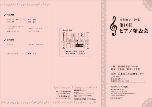 ピアノ発表会・吹奏楽・演奏会・コンサート・クラシックなど…音楽プログラムの印刷のことなら、たよれ〜るにお任せください◎