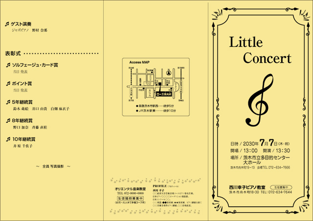 ピアノ発表会・吹奏楽・演奏会・コンサート・クラシックなど…音楽プログラムの印刷のことなら、たよれ〜るにお任せください◎