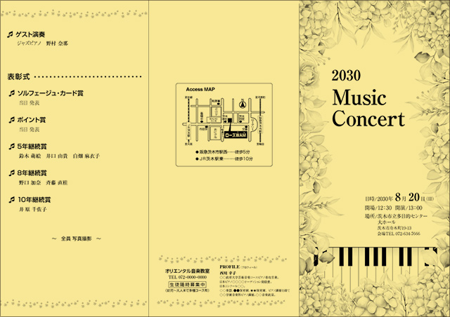 ピアノ発表会・吹奏楽・演奏会・コンサート・クラシックなど…音楽プログラムの印刷のことなら、たよれ〜るにお任せください◎