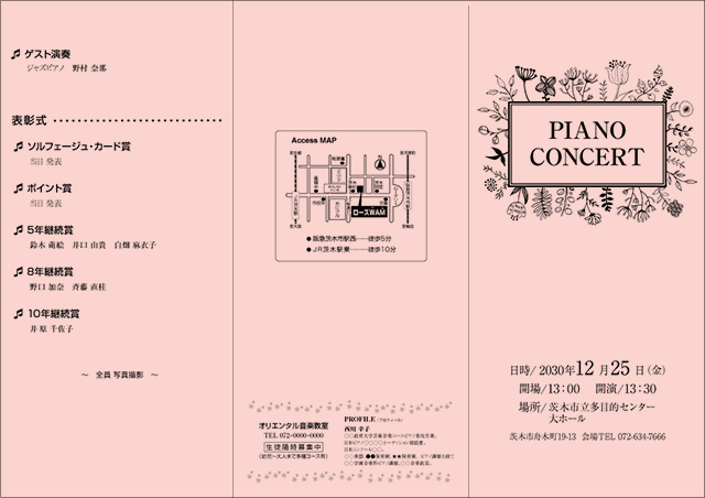 ピアノ発表会・吹奏楽・演奏会・コンサート・クラシックなど…音楽プログラムの印刷のことなら、たよれ〜るにお任せください◎